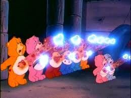 In nodwick they do a parody of the dungeons dragons film. It hits abraham lincoln and jackie chan knocking them out of sight lincoln is later seen dead on the ground but chan isnt seen again and the care bear itself also vanishes. These combine to form a ray of love and good cheer which could bring care and joy into the targets heart.