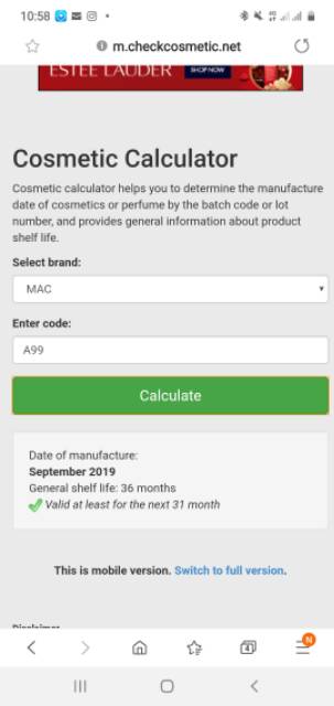 Its all about the eyes. Cosmetic calculator helps you to determine the manufacture date of cosmetics or perfume by the batch code or lot number and provides general information about product shelf life. The most common periods of suitability for use from the date of manufacture.