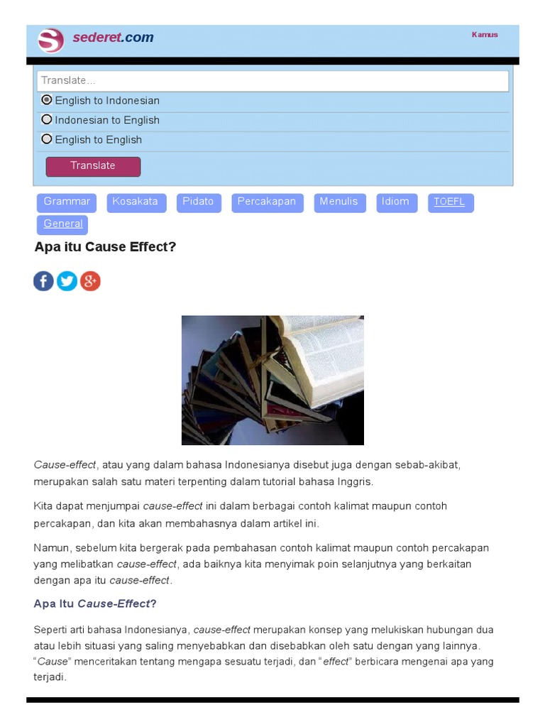 Cause and effect teks adalah jenis paragraf yang berisi analisa analisa penulis tentang sebab dan akibat. Cause and effect teks adalah jenis paragraf yang berisi analisa analisa penulis tentang sebab dan akibat. Jenis paragraf cause and effect ini umumnya dipakai dalam penulisan essay maupun explanation text.