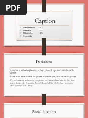 A short piece of text under a picture in a book magazine or newspaper that describes the. Caption synonyms caption pronunciation caption translation english dictionary definition of caption. Arti caption dalam bahasa indonesia adalah penjelasan singkat atas gambar foto tabel grafik dan bagan untuk melengkapi penjelasan suatu artikel atau teks news item.