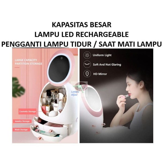 Led hd mirror makeup storage box cosmetic organizer makeup storage case. The storage box features the portable design which is free to move dustproof and. Full mirror dilengkapi dengan 4 lampu led 3.
